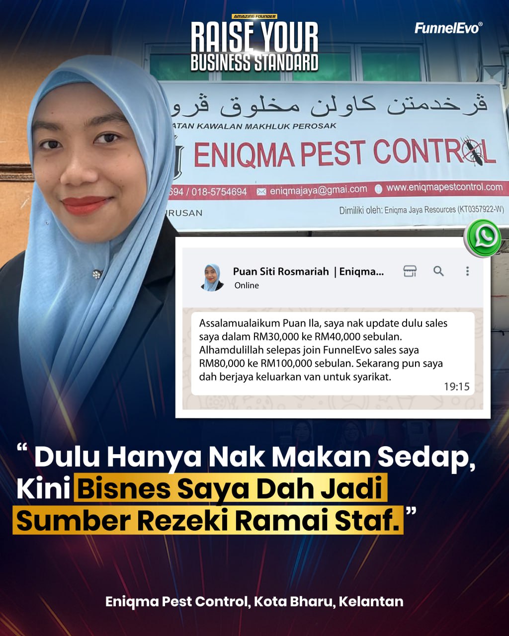 Dari Supervisor Stesen Minyak ke Founder Eniqma Pest Control Nama saya Siti Rosmariah, founder Eniqma Pest Control. Sebelum berniaga, saya hanyalah seorang supervisor di stesen ...