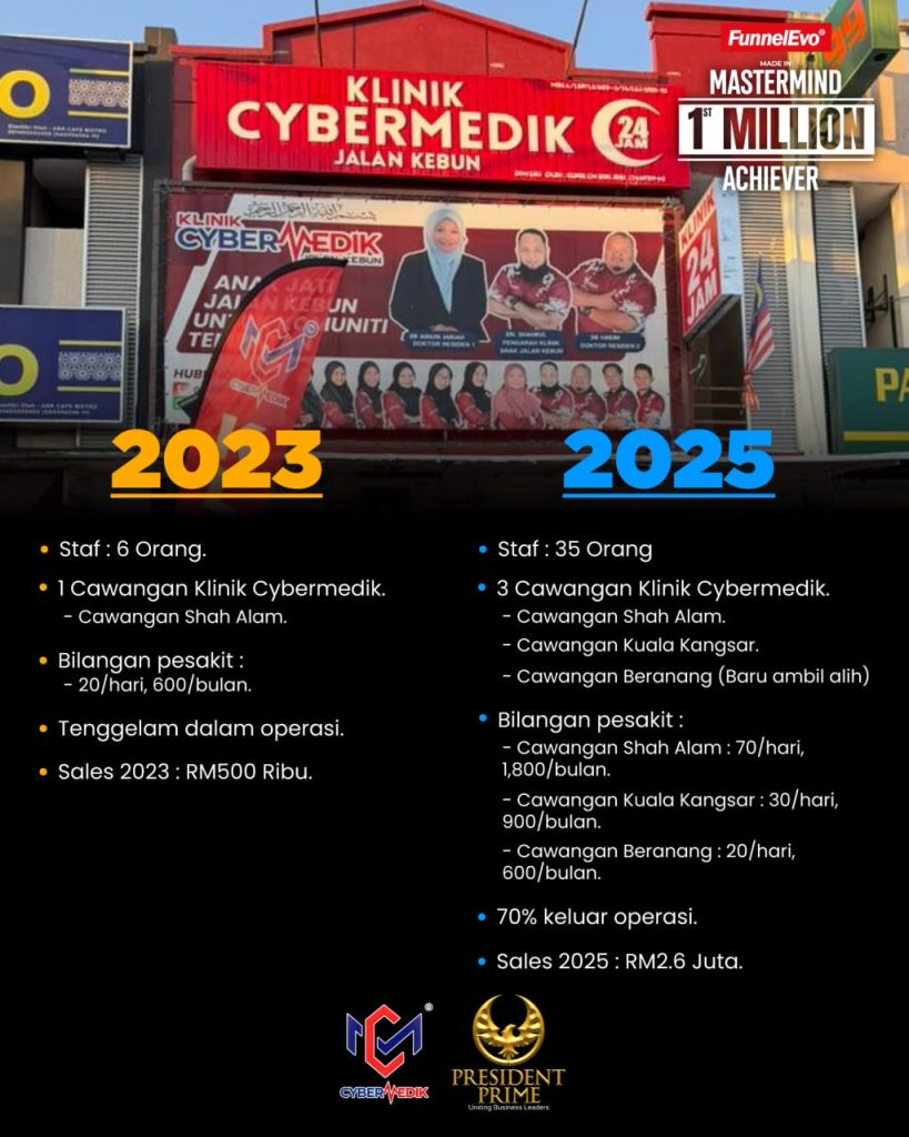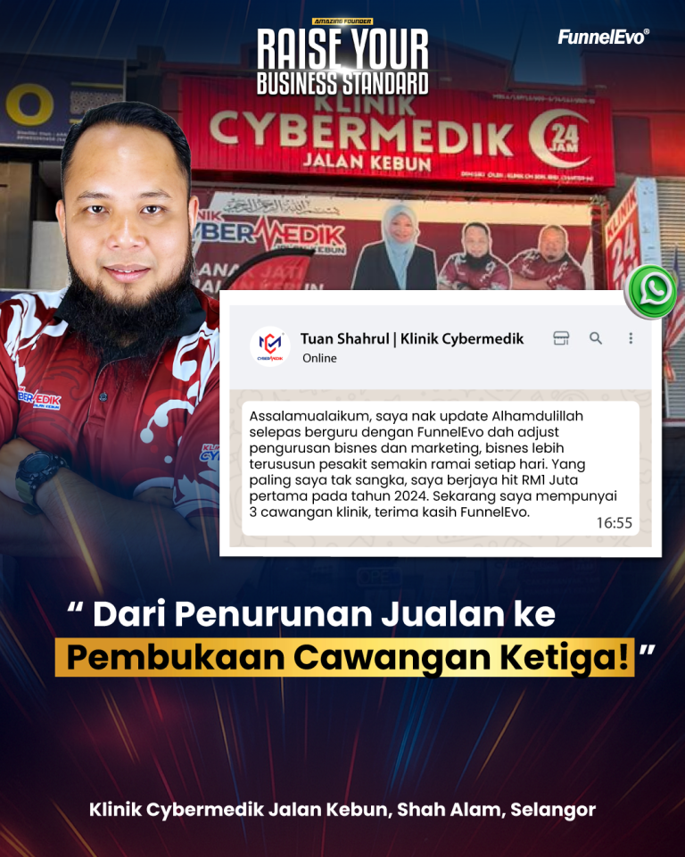 Selepas belajar dan dibimbing dengan FunnelEvo, cara saya melihat bisnes berubah sepenuhnya. Saya mula faham bahawa klinik bukan sekadar rawatan, tapi sistem, strategi dan positioning.