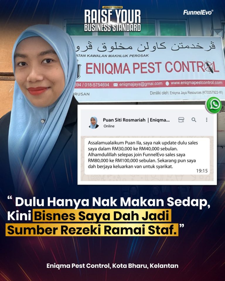 Dari supervisor stesen minyak, kini saya mampu bina Eniqma Pest Control menjadi syarikat pest control yang lebih sistematik dan berkembang. Semuanya bermula dengan keberanian ambil risiko, dan kesungguhan belajar ilmu digital.