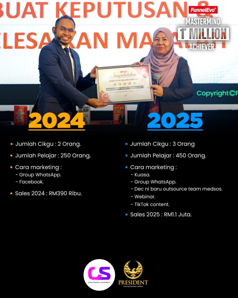 Alhamdulillah, saya berjaya capai RM1 juta pertama pada tahun 2025 bersama bimbingan FunnelEvo.